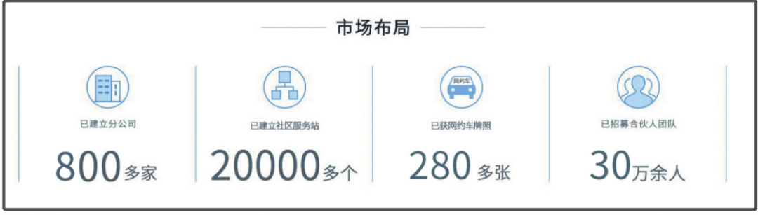 万顺叫车官方微博的媒体资料显示,公司已全国各城市设立了800多家直营分(子)公司,2万多个社区服务网点,运力领先于行业,而之所以能在短短3年时间内发展至此,归功于万顺“独创”的平台服务费包干模式和合伙人制度。