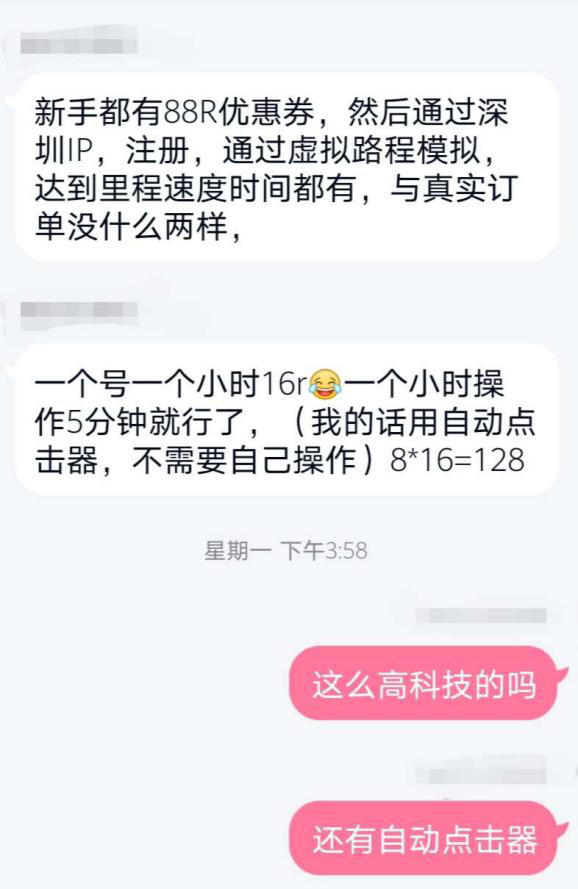 “改IP,改定位,再模拟路程,改手机型号,和真实订单一模一样,我还有自动点击器,一个号一个小时能赚16块钱。”