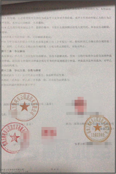 从合伙人最后一页的合同中,可以发现,股权是由该公司工会基层委员会代持,当甲方或其控股公司在资本市场主板上市(公开发行)时,股权才转到乙方或乙方确认的合规第三方名下。