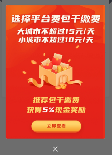 所谓包干,就是一次性付清平台费,司机可以根据自己需求选择月付、季付或年付,月付的话一月500元左右,年付一年则是4800元。此外,推荐别人购买套餐还能有5%的推荐费。