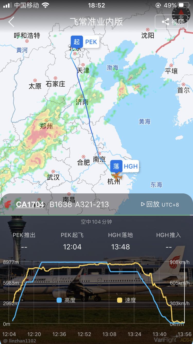 公开资料显示,CA1704航班执飞机型为空客A321-213(SL),机龄5.2年,注册号为B1638。