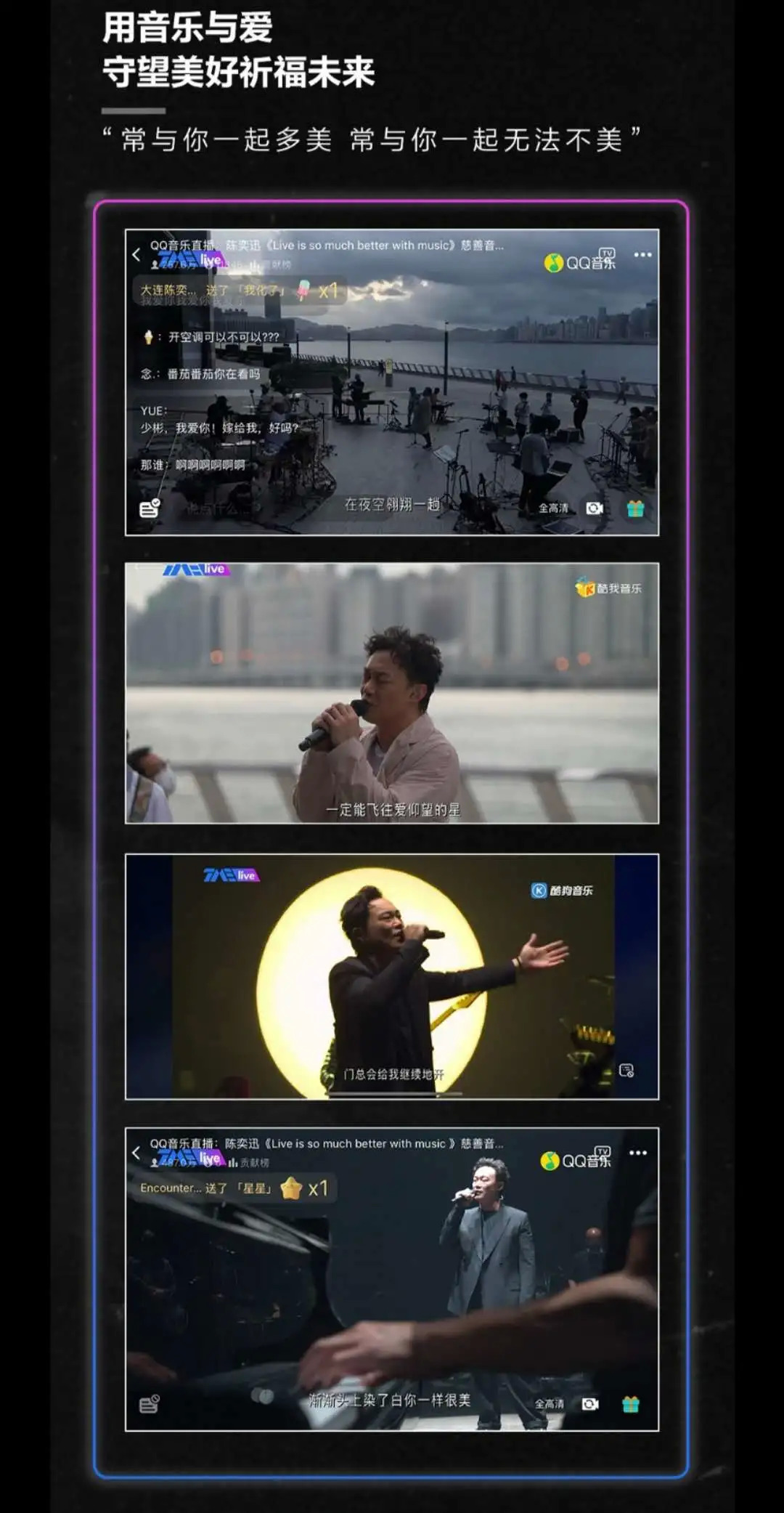 比TME live 更早的,还有由微博、网易云音乐、大麦、虾米音乐、腾讯音乐娱乐集团等五大平台共同发起的“相信未来”公益演唱会。