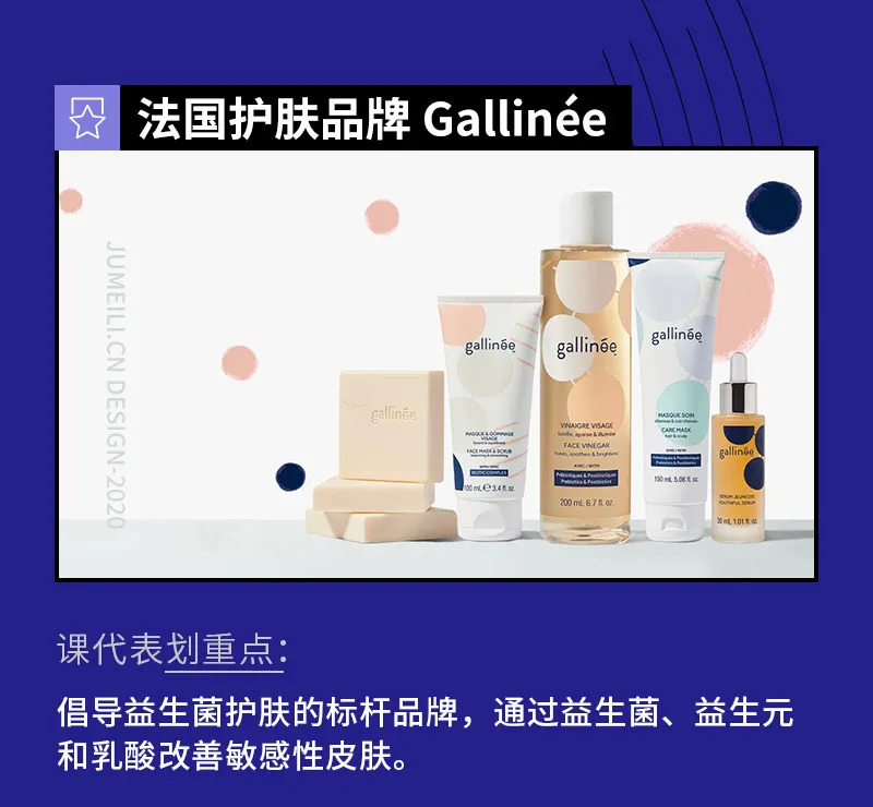 Gallinée 是2016年由法国药剂师Marie Drago创立的品牌,她在皮肤护理行业有15年的工作经验,推出品牌的灵感来源于她的自身免疫病史,因此她想要设计出一款对皮肤益生菌有利的产品。