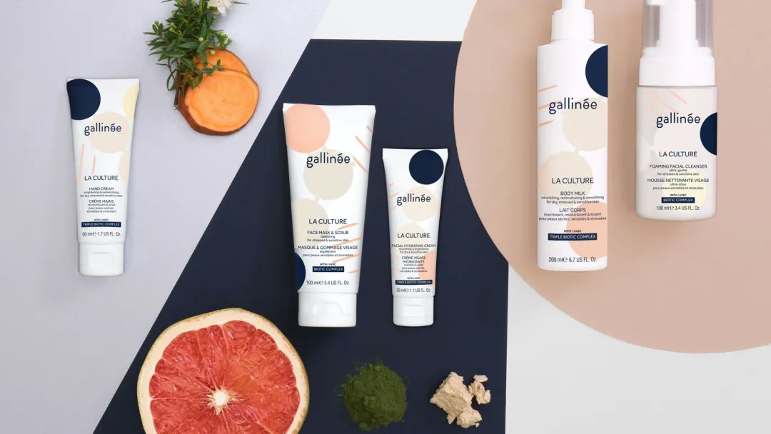 Gallinée 产品的售价在12欧元到35欧元之间,产品包括护手霜、身体乳、泡沫洗面奶、面霜、面膜和磨砂膏。其产品中还有具有专利的益生菌复合物以及益生菌和乳酸菌复合物。