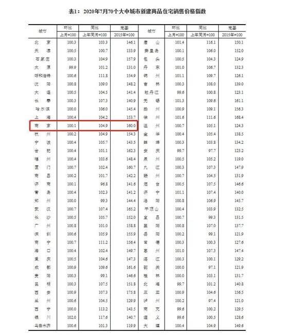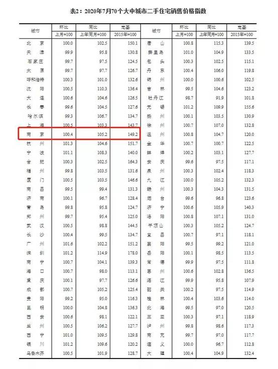 就在上周,国家统计局最新发布了2020年7月份70个大中城市商品住宅销售价格变动情况统计数据。其中,7月南京新房价格环比上涨0.1%、同比上涨4.9%,二手房价格环比上涨0.4%、同比上涨5.2%。