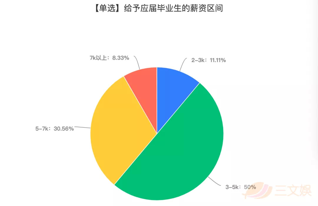 8.33%的受访公司明确表示,不会吸纳应届毕业生。而那超过90%,表示会向应届生打开大门的动画公司中,有一半给出的薪资区间是3-5K,只有8.33%的公司给出的薪资超过了7K。