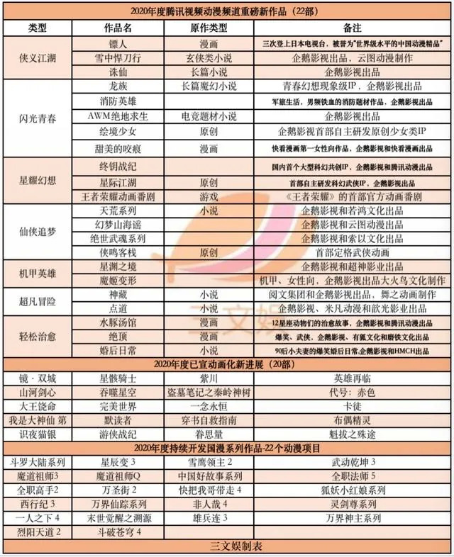 比如,腾讯视频动漫2020年年度发布会公布的新项目中不乏重磅IP作品