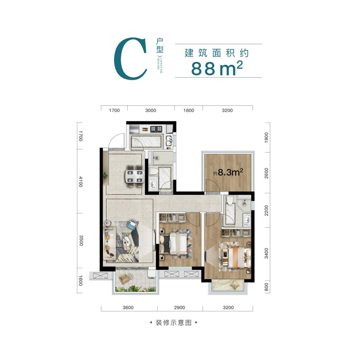 建面约88㎡做到如此户型,是什么概念呢?