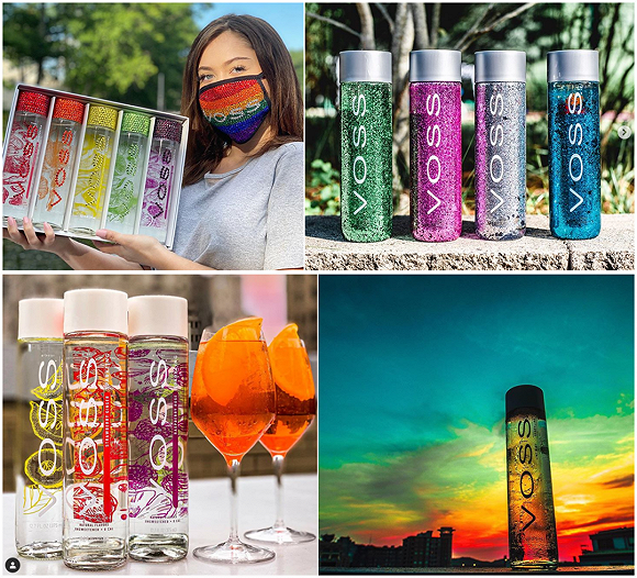 而相较于跟文艺复兴时代有瓜葛的普娜,以及与拿破仑都有些渊源的巴黎水,诞生于1998年的VOSS,算是这个圈子里的后来者了。它的出圈,全靠“玩”水瓶。