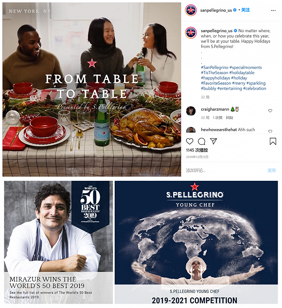 圣培露和餐饮场景作了强绑定。其在官方社交平台发布的动态,绝大多数配图都是餐桌画面。圣培露还常年赞助有“餐饮界奥斯卡”之称的美食奖项“全球50家最佳餐厅(the World’s 50 Best Restaurants),并举办“圣培露世界青年厨师大赛”。