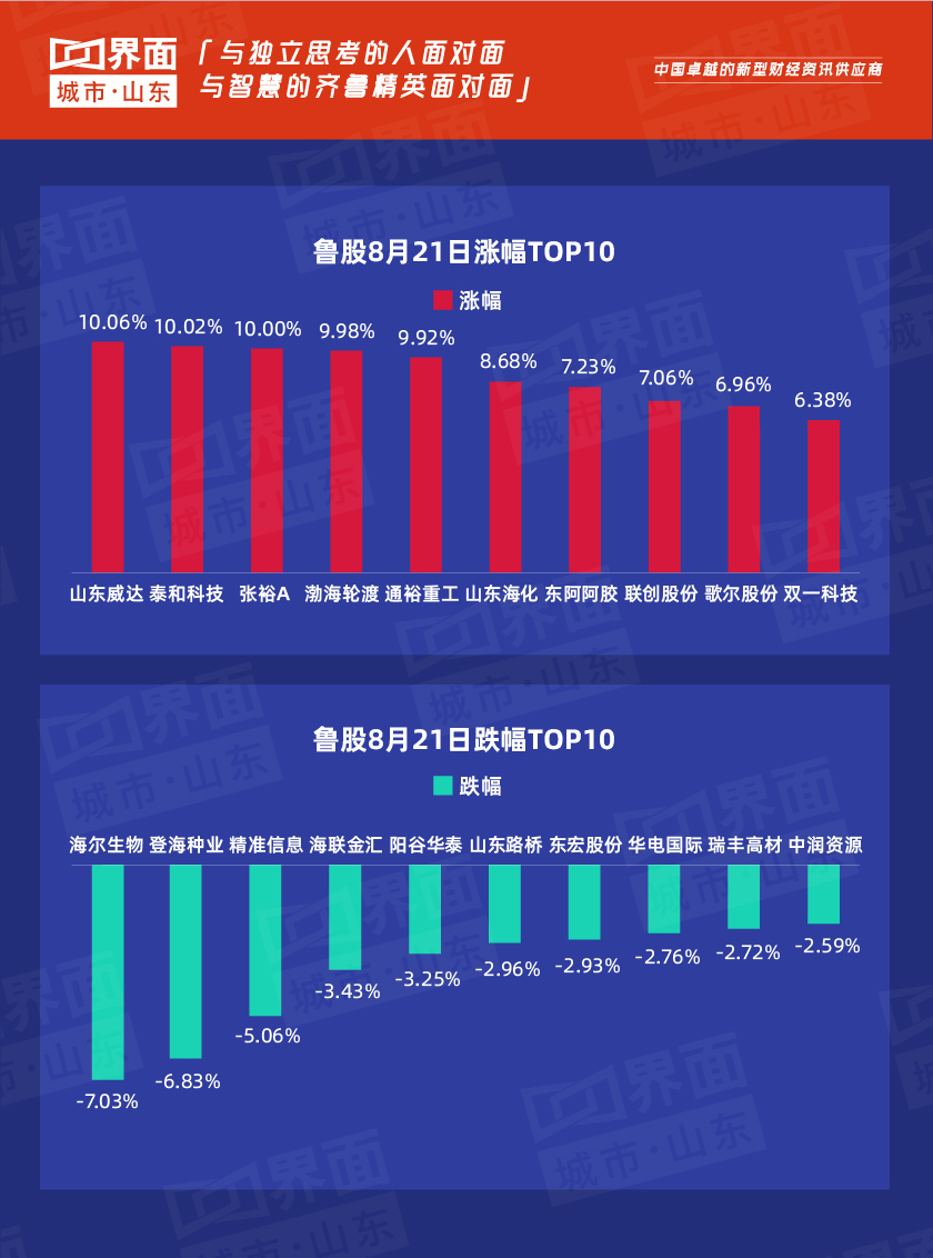 受大盘影响,8月21日,山东136只个股上涨,74只个股下跌,山东威达、泰和科技、张裕A涨停