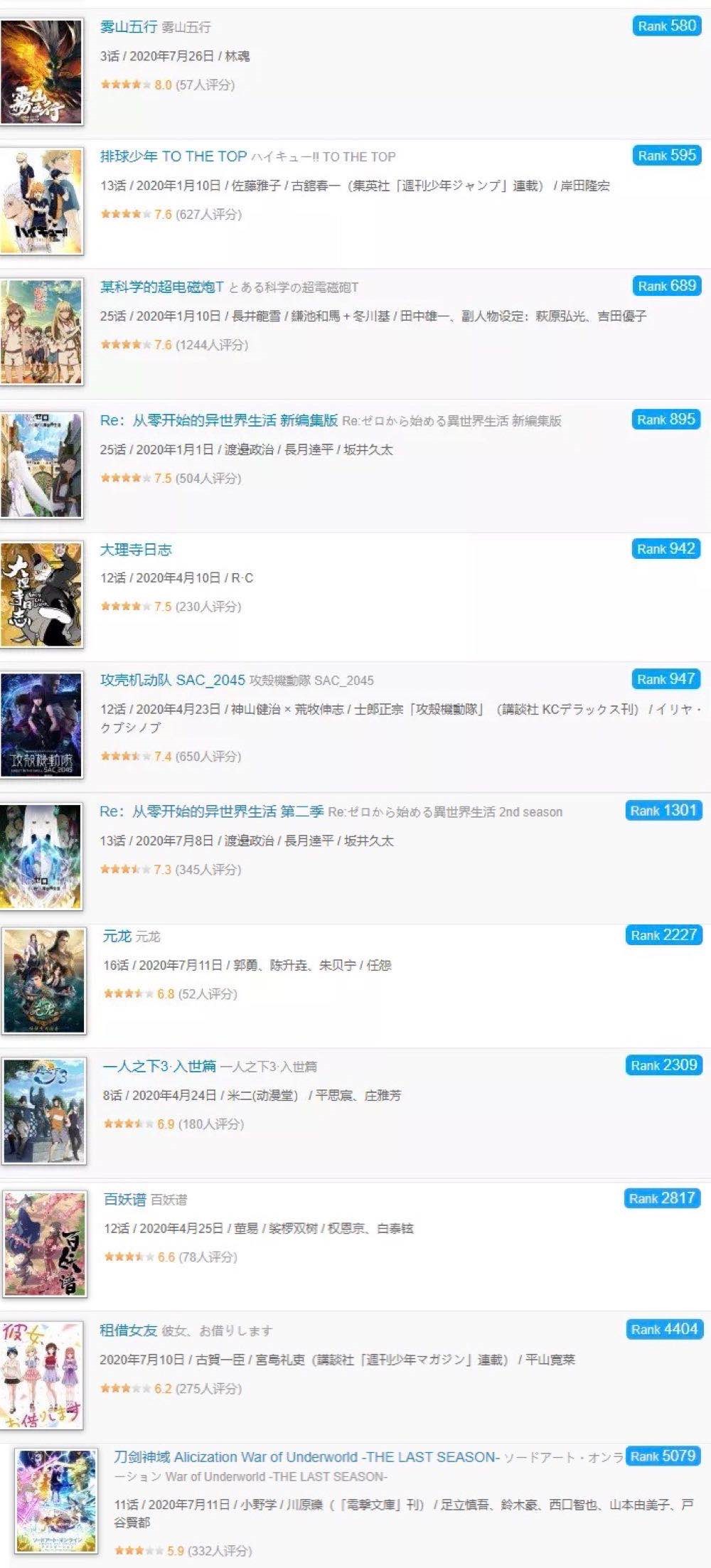 (bangumi网站排行榜:诸多国漫上榜)