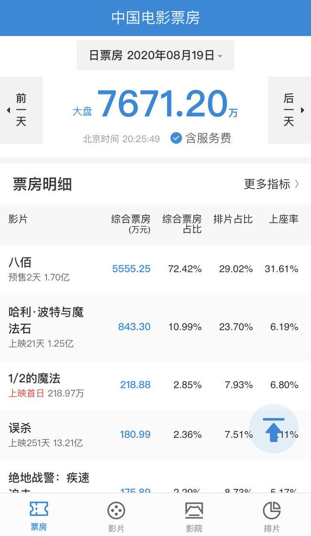 根据中国票房数据,昨天日电影大盘单日票房达到7671万,创下影院复工以来的新高。而这其中《八佰》以5555万票房占比大盘72.42%,完成票房领跑;华纳兄弟的经典重映大片《哈利·波特与魔法石》(以下简称《哈利·波特1》)单日票房尚未超过千万,但是重映累计票房已经达到1.25亿。