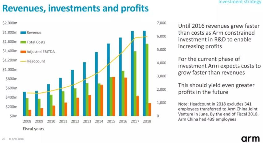 另一方面,芯原股份的投入似乎紧跟ARM步伐。ARM于2016年私有化退市,2017年开始ARM研发费用剧增,净利润直线下滑。