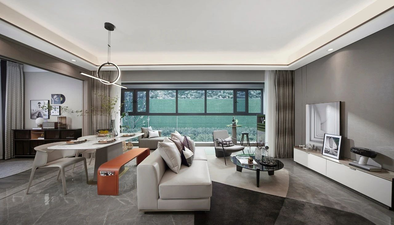 内部装修设计在各个方向都以延伸的直线条为主导,横平竖直的视觉效果,增强空间的层次感;家居选材上也下了一番功夫,是目前市场上少见的具备全屋墙纸交付标准,内饰方面,还高标准的采用高仪、科勒等国际一线品牌,同时罕见的配置了前端净水、独立12件套中式洗碗机、千兆六类网线与模块、中空LOW-E玻璃、304不锈钢烟道、高品质钢木复合带指纹密码锁入户门,只为提升住户生活体验。