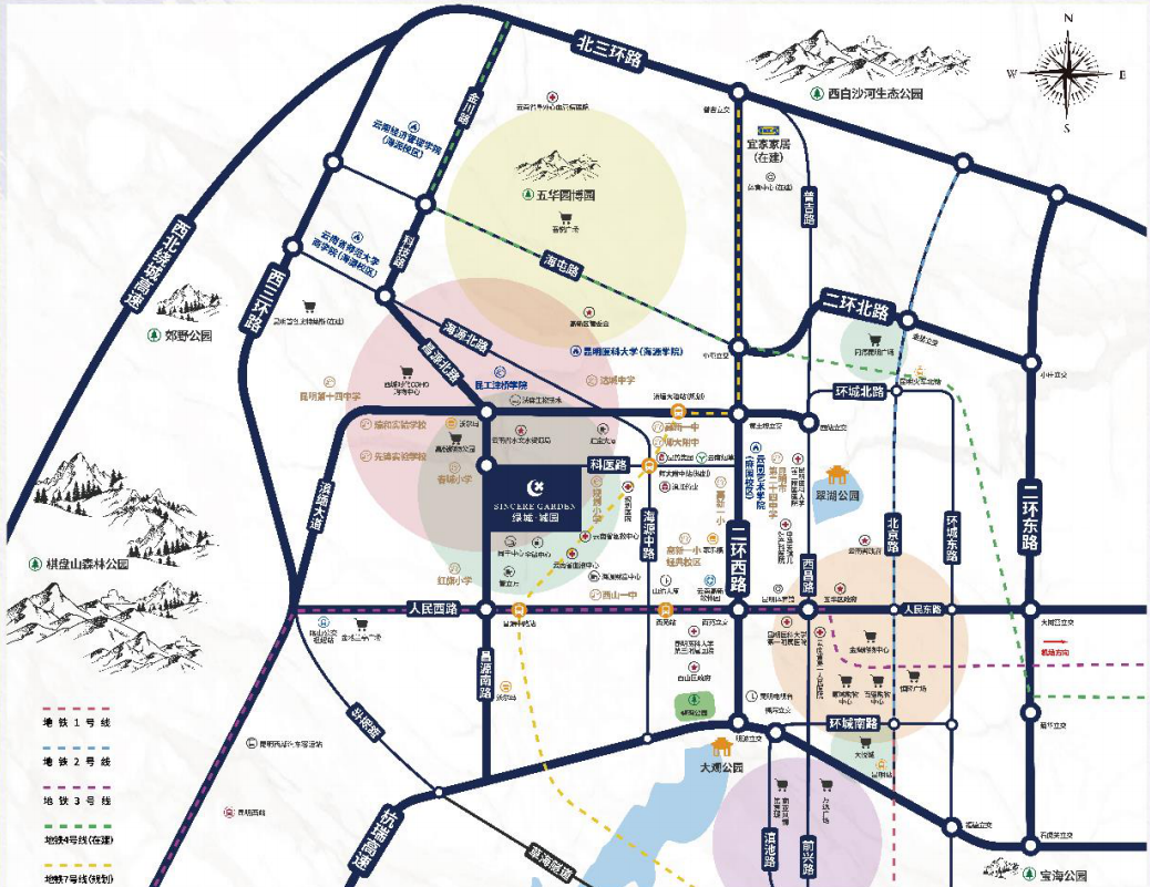 绿城·诚园地处昆明主城区,近二环的位置,同时还占据了西市区发展核心区,是区域内人口、经济、商业中心地。其周边的教育、医疗、交通、商业等配套发展已经十分成熟和完善。