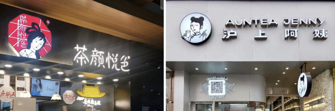 而茶颜悦色和沪上阿姨,则把品牌名直接融入了人物形象里。