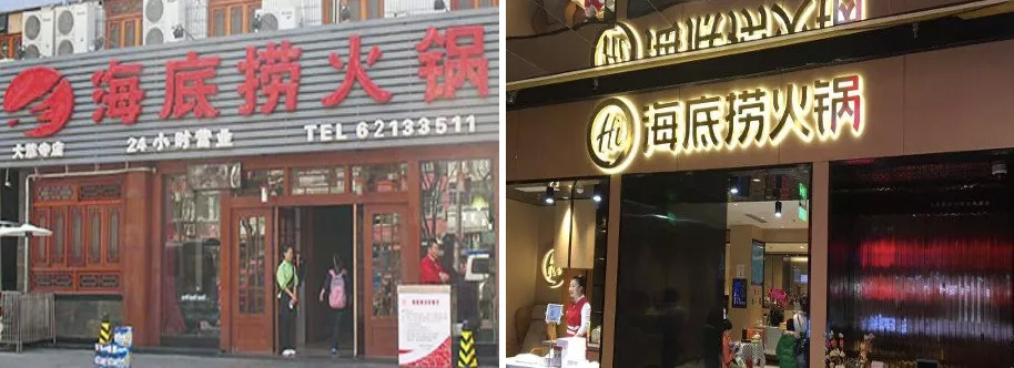 比如海底捞的字体,前后风格变化就很明显。
