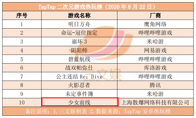 TapTap二次元游戏热玩榜