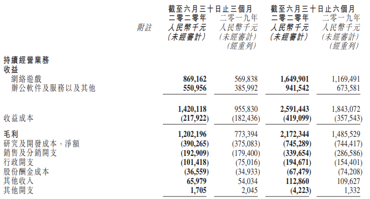 其中网络游戏增长最为迅速,第二季度网络游戏收入同比增长53%至8.69亿元,较上季度增长11%,主要由于《剑网3》录得极为强劲的收益增长。