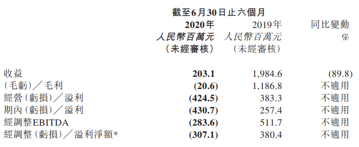 8月17日,猫眼娱乐发布半年报,2020年上半年收益为2.03亿,同比下降89.8%;经调整后的亏损净额为3.07亿元,去年同期经调整后的盈利净额为3.8亿元。