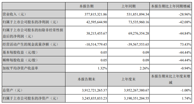 天舟文化今年上半年营业收入为3.78亿元,上年同期为5.32亿元,同比下降28.96%,净利润为4259.6万元,上年同期为7353.6万元,同比下降42.08%。