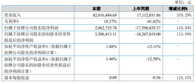 世纪优优上半年营业收入大幅提升,从原本的1711.2万元上升为8201.6万元,增长379.29%,净利润从去年的亏损1759.0万元提升为今年的2962.7万元,增长116.84%。