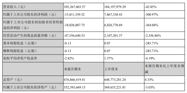 实丰文化上半年营业收入为1.05亿元,上年同期为1.84亿元,同比下降42.85%,净亏损1581万元,同比下降300.97%。
