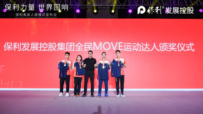 发布会上,保利奥体人居运动大使林丹还为“保利全民MOVE计划” 运动达人代表,2020年业主羽毛球联谊赛的冠军们颁发了冠军奖牌,他表示:“冠军只有一个,但体育运动属于每一个人。”鼓励更多民众参与到体育运动中来。