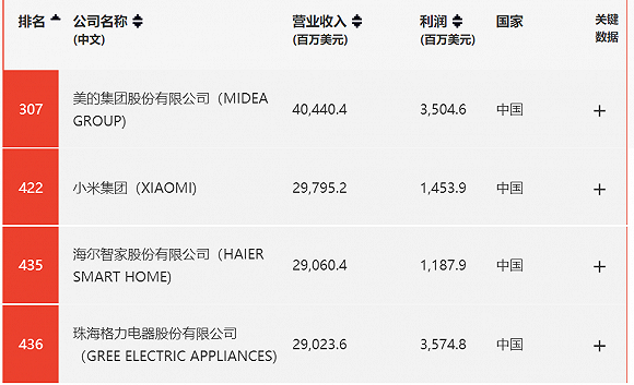 根据榜单显示,美的集团2019年总营收为404.40亿美元,营收年增长率同比提升2.2%;利润额为35.05亿美元,同比增长14.6%。