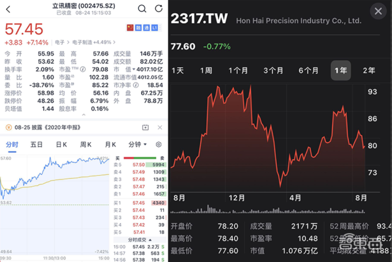 今天,立讯精密股价大涨7%,市值重回7月初曾达到的4000亿人民币高点。刚刚发布的上半年财报则显示其营收同比增长达到70%,净利润同比增长69.01%。