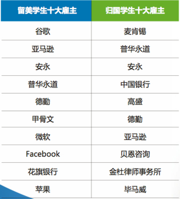 金融行业也是归国留美学生的热门就业领域,其中中国银行成为归国留美学生十大雇主中唯一的一家中国本土企业。