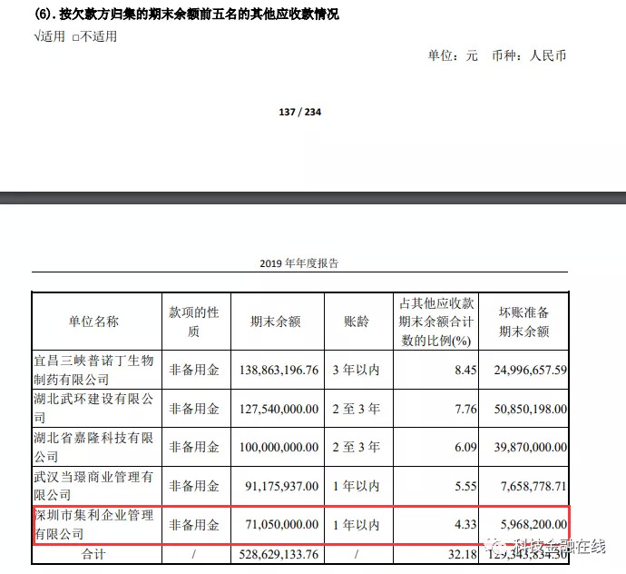 目前,人福医药公布了2020年半年报,根据人福医药半年报,该公司其他应收款合计11.59亿,按照欠款余额排名,前五名中已经没有了深圳市集利企业管理有限公司名字。而2019年年报显示,深圳集利排第五位,欠人福医药7105万。当时财报备注的款项性质为“非备用金”。