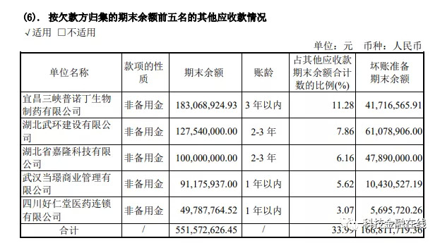 其实无论2018年年报,还是2019年半年报中,排在“欠款”第五位的一直是四川好仁堂医药连锁有限公司,欠款金额也一直稳定在49,787,764.52元(4978.78万元),直到2019年下半年突然被深圳集利“顶替掉”,不过在今年上半年,四川好仁堂终于又重新恢复了自己“第五大欠款方”的地位,金额仍然是49,787,764.52元。