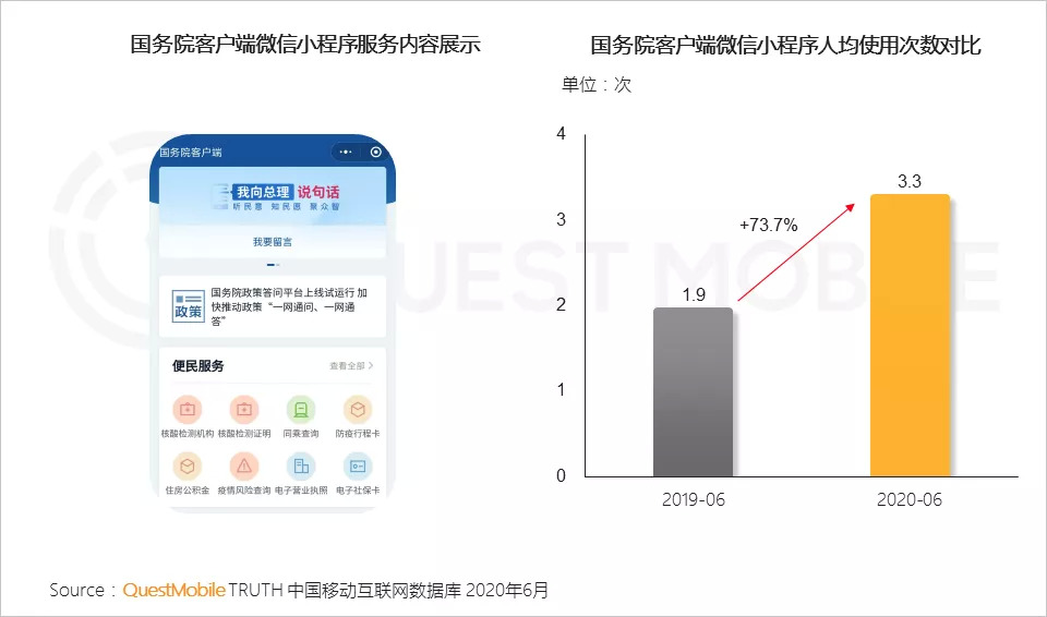2.2 国务院客户端微信小程序及时上线防疫行程卡、疫情风险查询及核酸检测等相关服务,用户使用次数上升明显