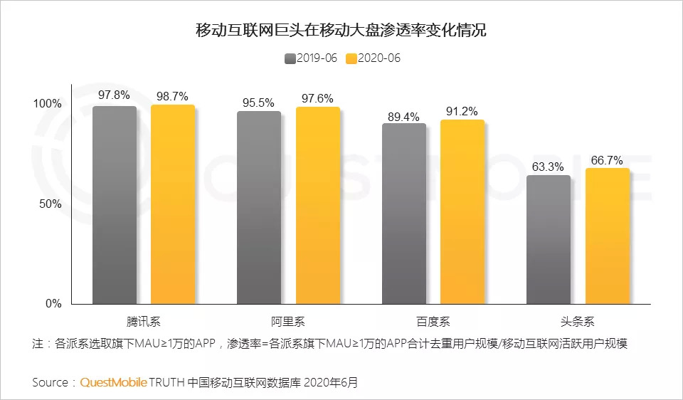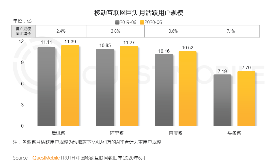 2、BAT三家用户规模均破10亿,头条系同比增长7.1%,流量优势显著,小程序成为巨头们深挖用户价值、赋能生态建设的重要领域