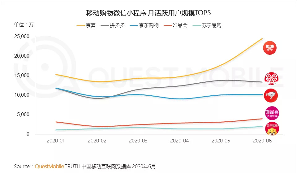 5.1 电商竞争在微信小程序领域开辟新战场,拼购模式在微信社交流量土壤下得以充分发挥;618电商购物节带动下,京喜覆盖用户规模提升显著