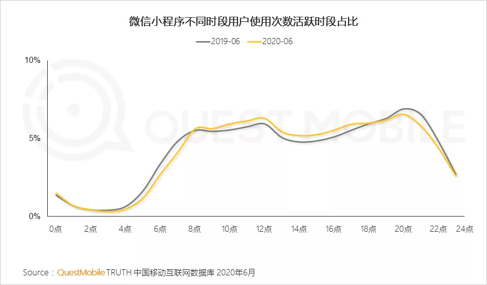 3、与去年同期相比,用户在工作时间段使用微信小程序的次数提升明显