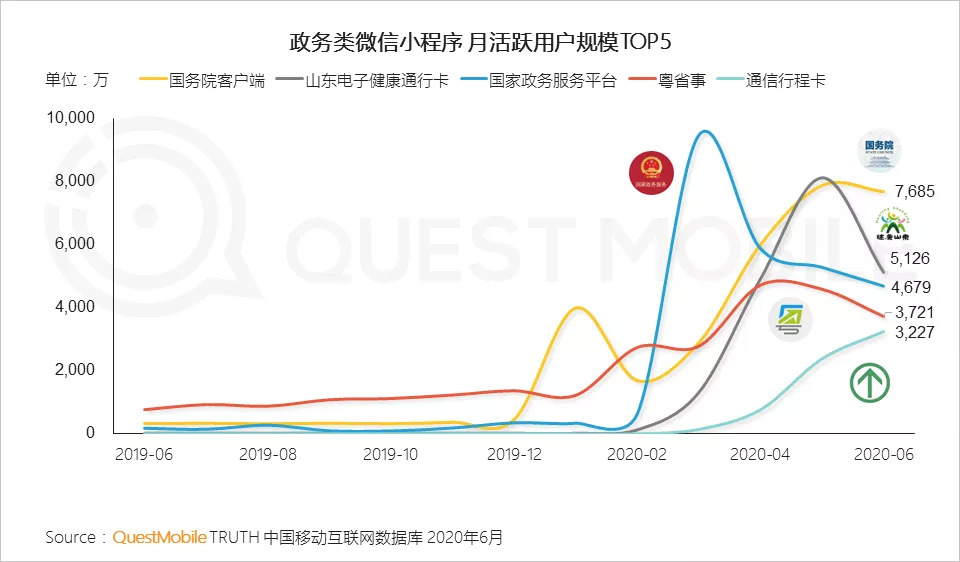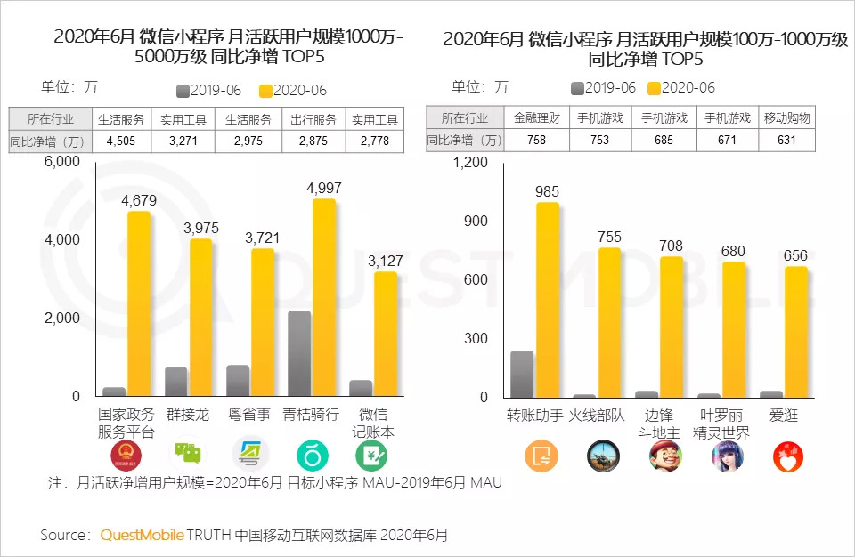 7、疫情成为影响上半年小程序格局的关键因素,各类小程序均展现出强劲的增长爆发力;头部增长量级中腾讯旗下自有小程序居多