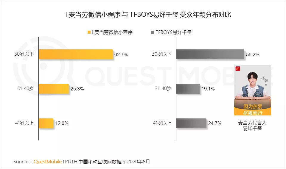 3.2 麦当劳品牌微信小程序用户年龄主要集中在30岁以下年轻群体,通过选取青春活力的偶像明星作为代言人,提升在年轻用户中的转化率