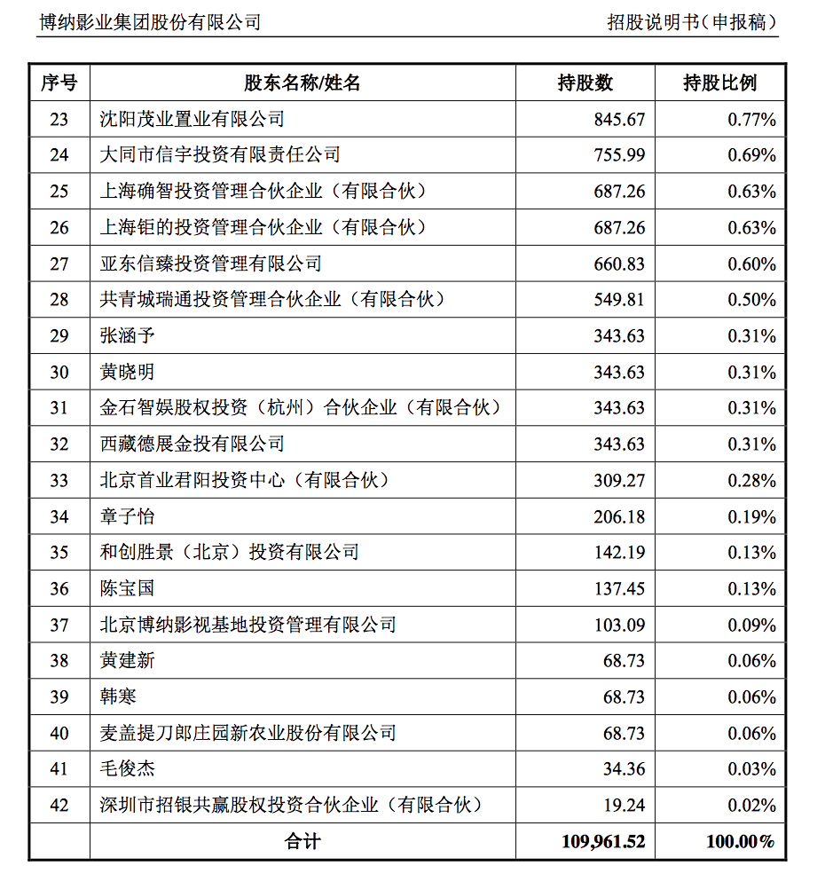 在旧版本的招股书里,博纳影业最为人关注的就是明星股东。