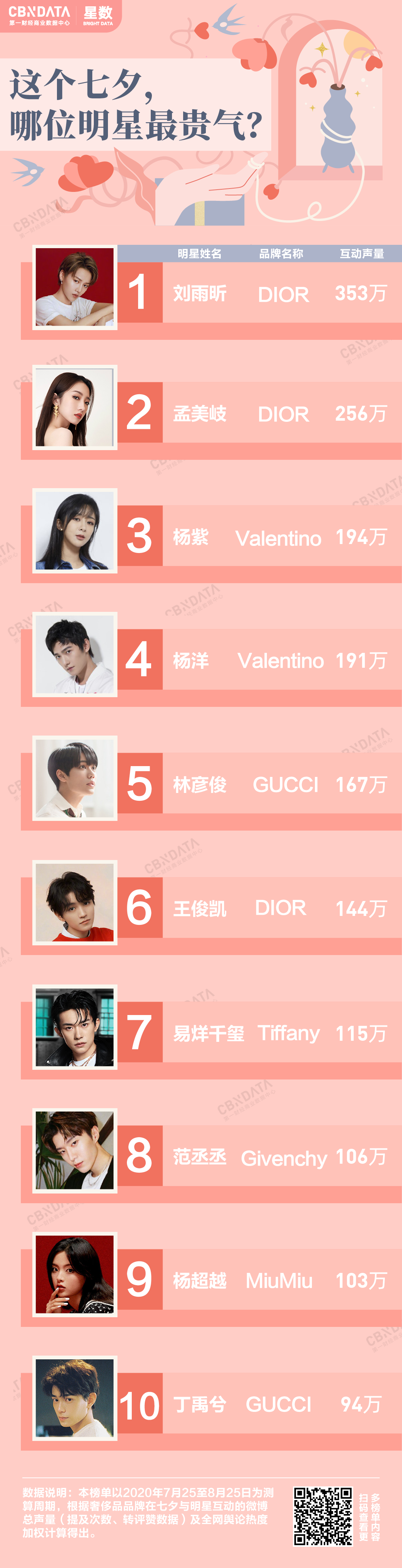基于此,CBNData星数选取了今年七夕在明星领域进行活跃宣传的奢侈品品牌们,看看到底哪些明星跟他们的合作最具人气?又有哪些不一样的合作营销形式?