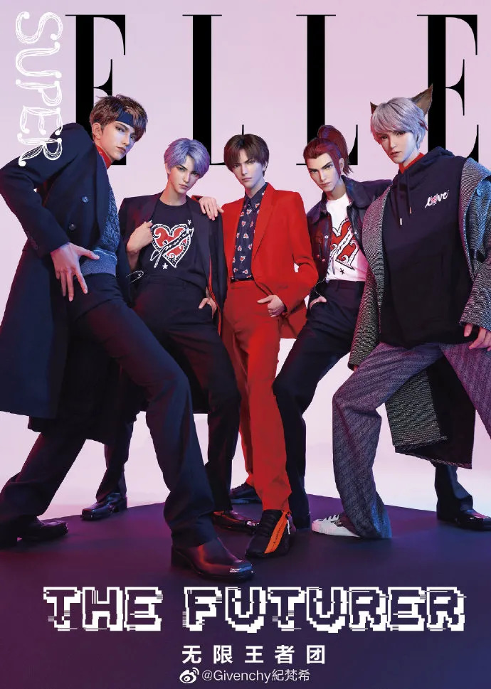 纪梵希喜欢让合作对象上杂志的习惯不仅限于明星。7月下旬,纪梵希还邀请了《王者荣耀》中的虚拟偶像团体“无限王者团”身着七夕限定系列,登上《SuperELLE》演绎七夕主题。