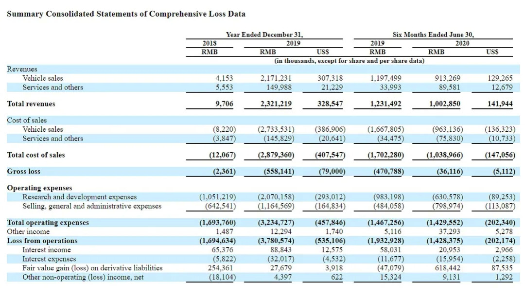 招股书显示,2018年,小鹏汽车净亏损13.99亿人民币,2019年亏损面积持续扩大,净亏损36.92亿元。直至P7上市后,这一情况有所改善,2020年上半年净亏损缩减至7.96亿元。