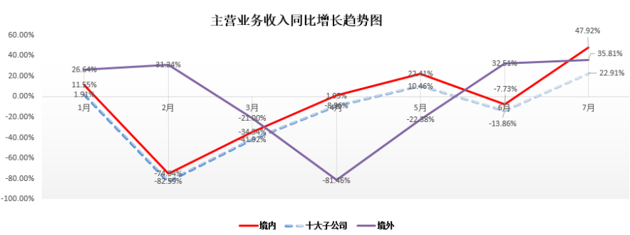 中报可见,爱尔眼科7月整体业绩快速提升。6月公司境内主营收入同比下降7.73%,到7月则同比大增47.92%。