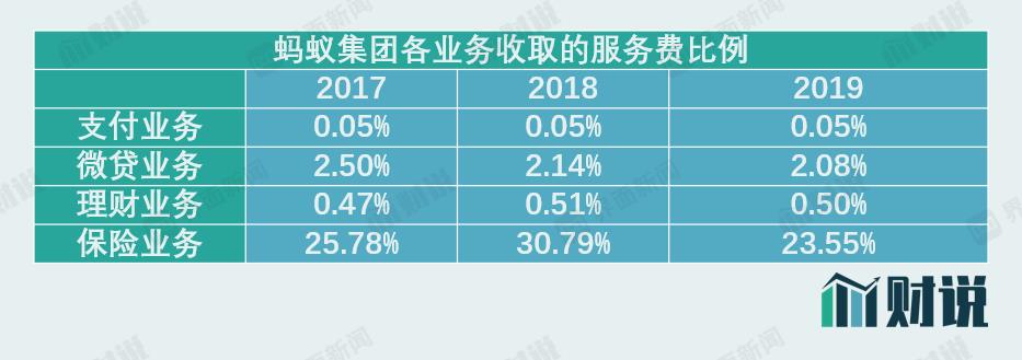 蚂蚁集团各业务之间收取的服务费比率相差巨大。