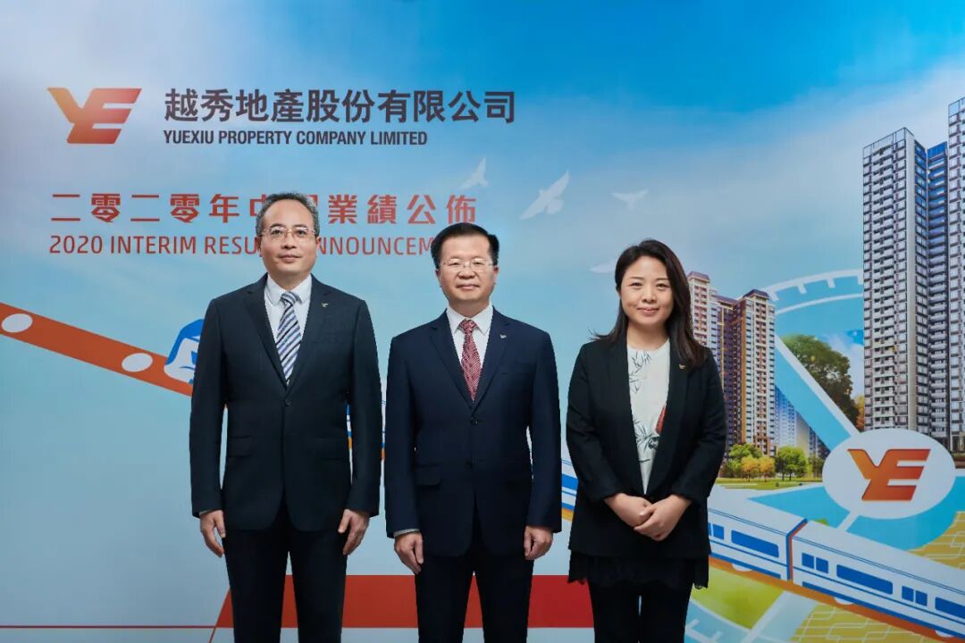 越秀地产副董事长、执行董事兼总经理林峰(左),董事长兼执行董事林昭远(中),财务总监兼执行董事陈静(右)