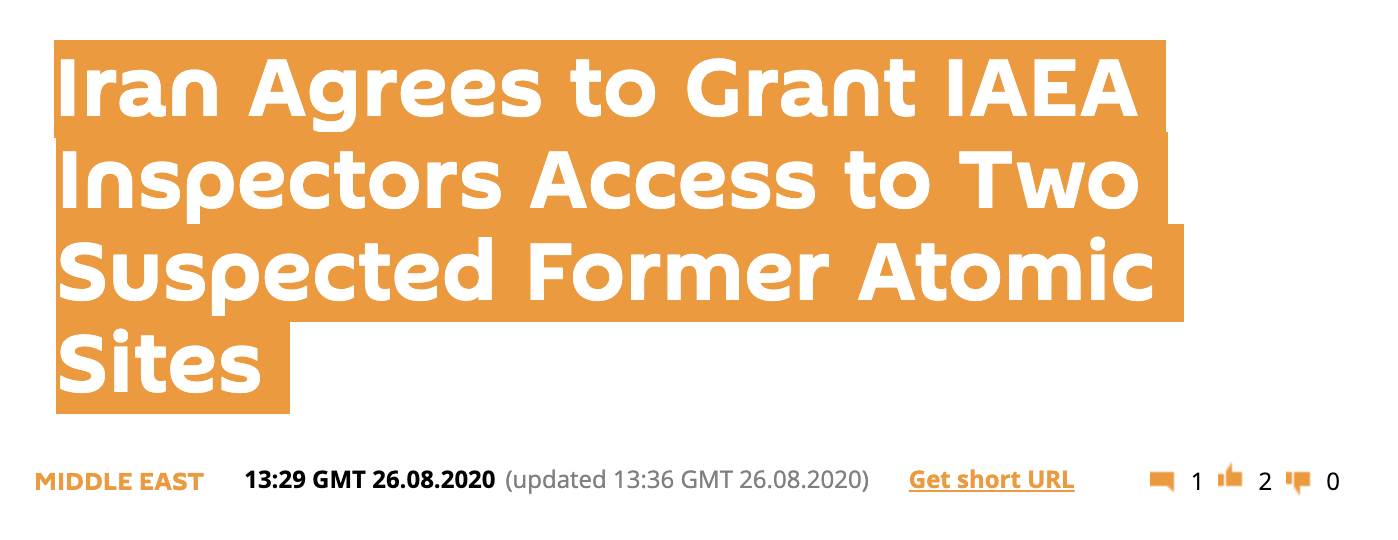 俄罗斯卫星通讯社8月26日消息,伊朗同意允许国际原子能机构核查人员进入两处疑似前核设施。