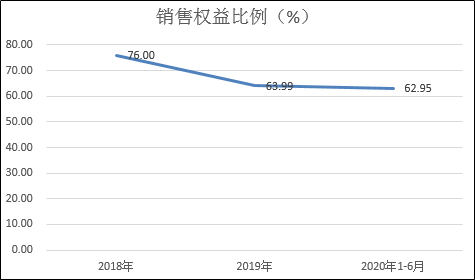 2020年上半年首创置业权益销售额为194.2亿元,同比下降25.62%。上半年公司权益比例约62.95%,较2019年的63.99%进一步下滑。
