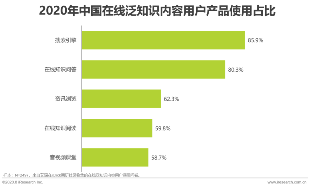 搜索引擎和在线知识问答产品具有更高用户使用渗透率